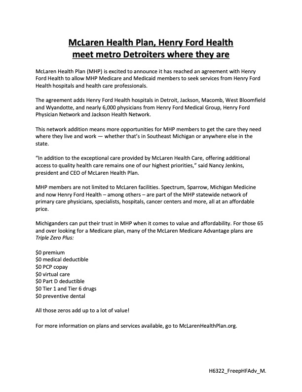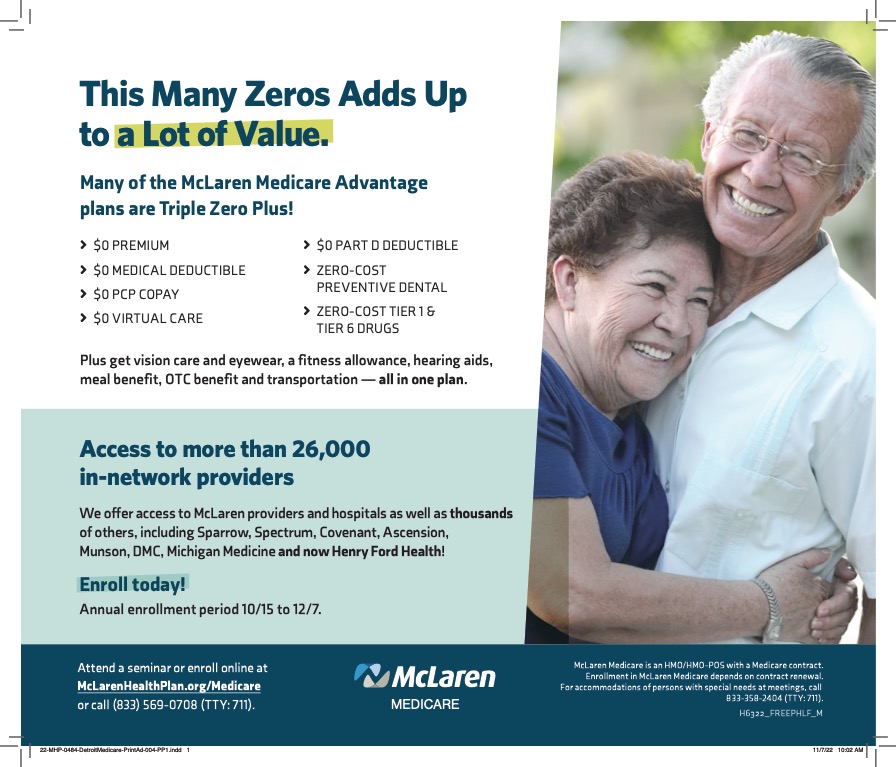 Print (Charlotte County Journal, The Flashes Advertising and News, Gaylord Times-Herald, Petoskey News-Review, Cheboygan Daily Tribune, and View Newspapers: Genesee County View and Tri-County Times; Detroit Free Press and Detroit News Medicare Decision Guide)